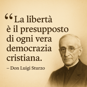 Questa visione fu incarnata in modo profetico da don Luigi Sturzo, il sacerdote siciliano che lanciò nel 1919 il celebre “Appello a tutti gli uomini liberi e forti”, chiamando i cattolici all’impegno diretto nella vita politica. Sturzo non separava la fede dall’azione civile, ma vedeva nella politica un campo privilegiato per vivere la carità cristiana, per difendere la libertà e promuovere la giustizia sociale. La sua opera resta oggi un punto di riferimento imprescindibile per chi crede in una politica animata da ideali e non da interessi.
