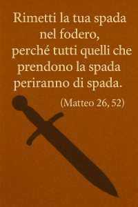 “Rimetti la tua spada nel fodero, perché tutti quelli che prendono la spada periranno di spada” (Matteo 26,52).