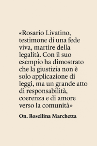 Come ha scritto l’On. Marchetta, “la legalità è un atto di amore verso la comunità”. Un amore che Livatino ha incarnato fino al dono della vita.
